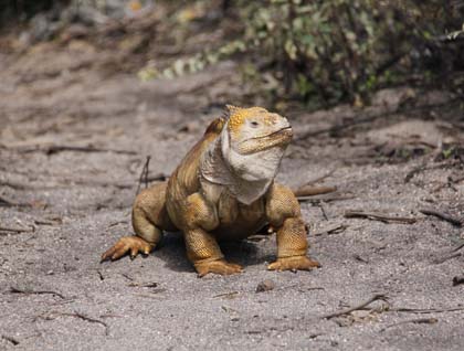 The Zodiacs were ready so we disembarked onto a black-sand beach at 7:45 a.m. The first groups on the beach are those going on a long hike, and the later arrivals are those doing a shorter version. The action was intense right away, with us seeing four giant tortoises resting in the shade of some trees. At this moment we shared with our explorers the natural history of this iconic Galapagos creature. Not far down the path we again see tortoises as well as Galapagos land iguanas, which show no fear of our presence. We take pictures and have time for questions before heading to our next stop, where we viewed vegetation and discussed the botany of the islands. The bird watching here was also good, and many photos were taken. After our walk we better understood the ecology of this place and headed back towards the beach for a quick dip in the ocean to refresh ourselves before going back aboard the ship.