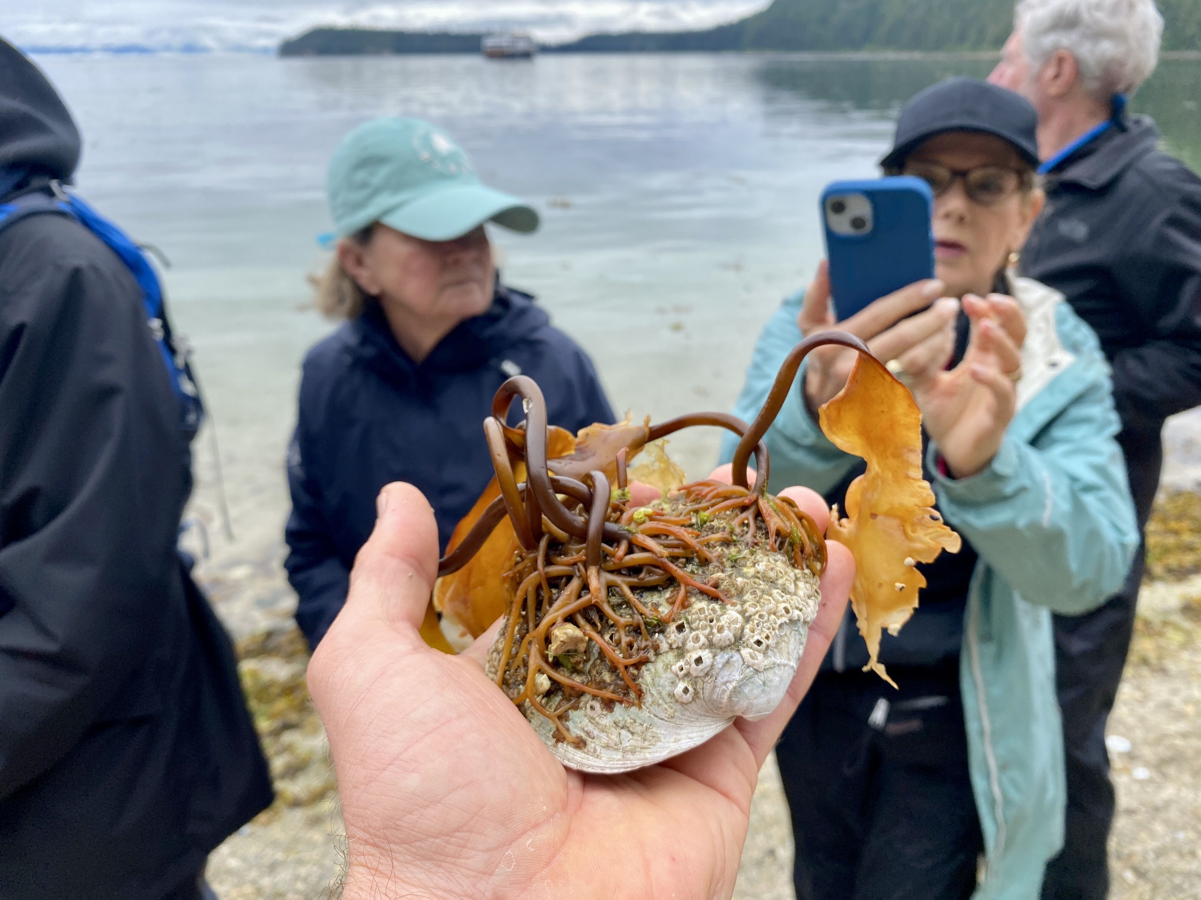 Despite the mountains being rimmed by foreboding clouds, National Geographic Sea Bird managed to avoid southeast Alaska’s torrential rain! We awoke in Chichagof Island’s secluded Ushk Bay and spent our morning exploring the meadows and animal trails that pepper the back of the old glacial outwash.