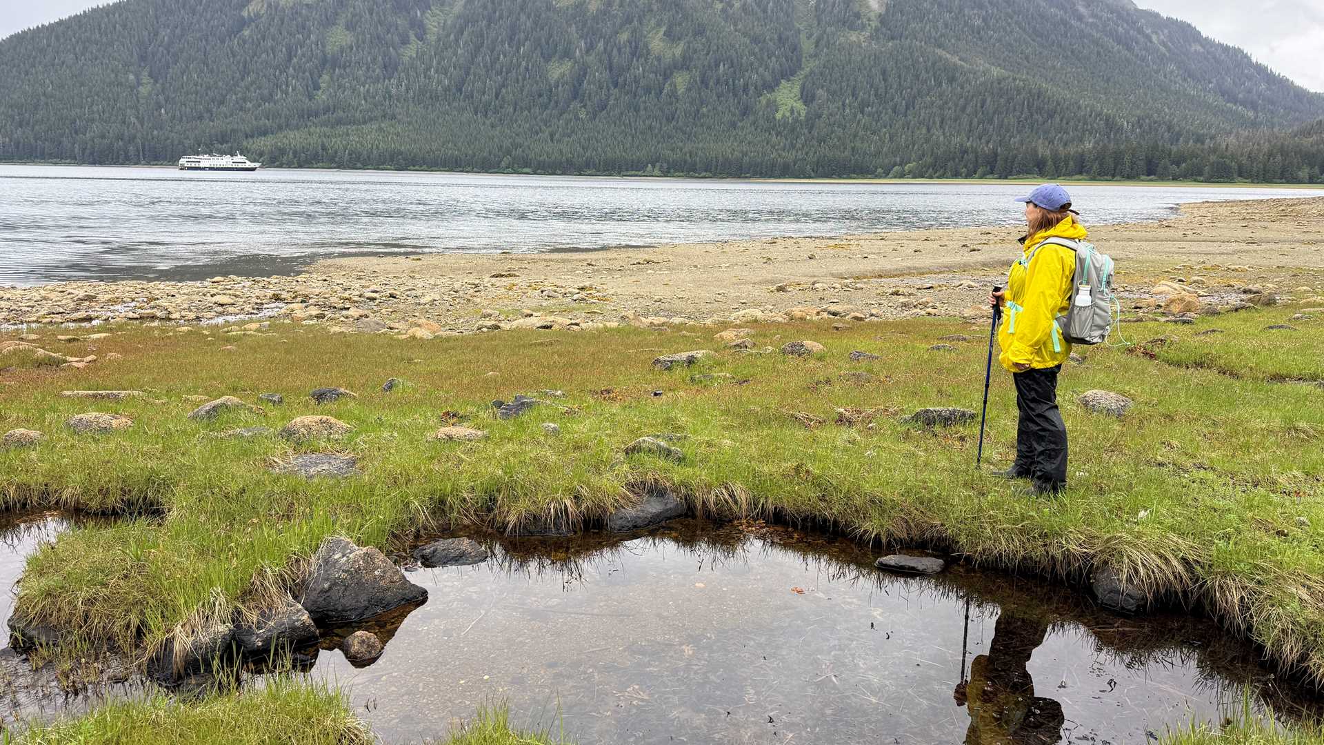 We were met today with ideal Alaskan weather: crisp, clear, and calm. We enjoyed perfect conditions for hiking through the forests and alluvial meadow of Ushk Bay. We split into groups depending on hiking desires and set off into the wilderness. We hiked on game trails through forests of western hemlock and Sitka spruce, crossed shallow streams, gazed at spring wildflowers, and investigated intertidal organisms. It was a lovely morning of stretching our legs and exploring the temperate rainforest.