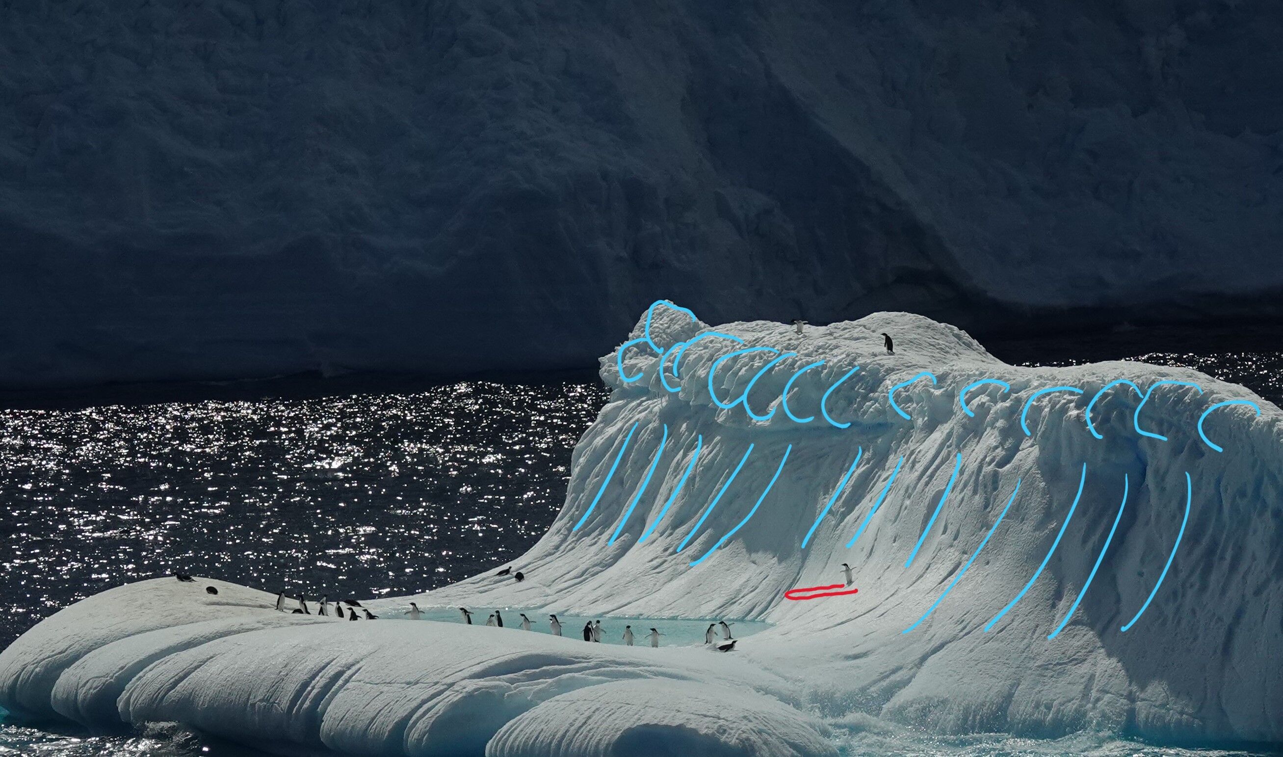 The Winner of our National Geographic Endurance Artistic Ice Contest: “Surfing Penguins” by Bill Boitnott. Photo by Jackie Weston
