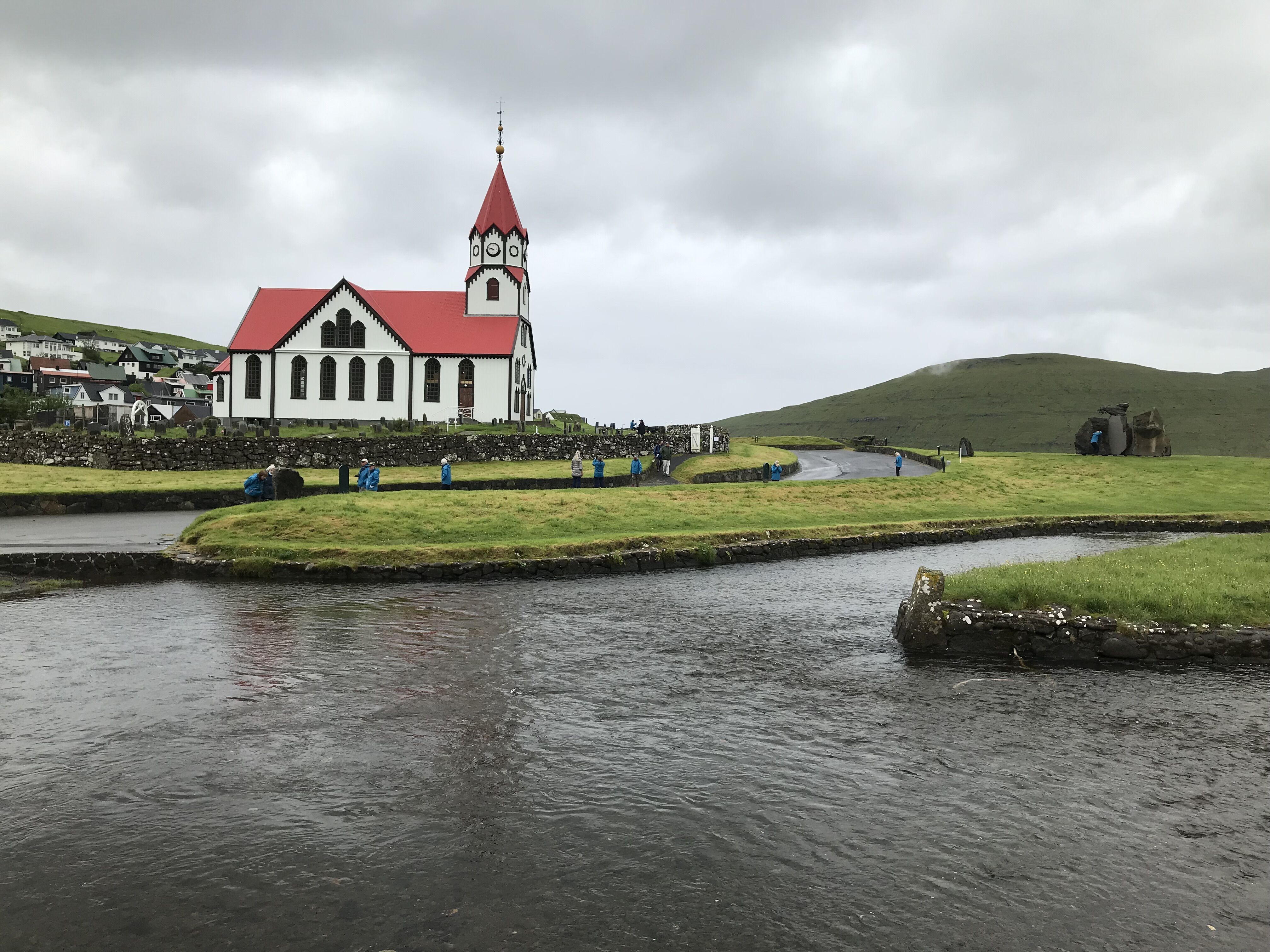 Nearby lies the village of Sandavágur with its pretty church. Eighty percent of the population belongs to the state Lutheran Church. This one dates from 1917 and has a beautifully painted interior with floral motifs, and it contains a rune stone from the Viking Age. Despite its dramatically steep hillsides, Vágur is also the unlikely home of the Faroe’s airport, started by the occupying British forces during the Second World War.