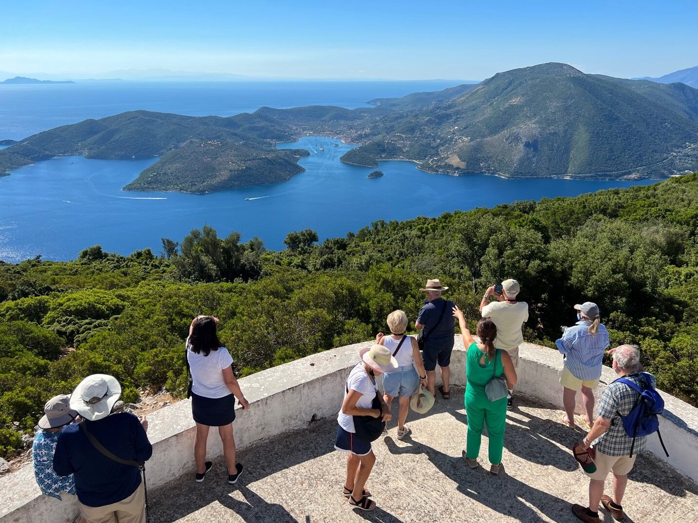 What a spectacular morning in Ithaca! With Sea Cloud anchored just offshore in the natural harbor of Vathy, we departed in Zodiacs to explore the island home of Odysseus, the Greek hero. Odysseus famously spent ten years cursed by Poseidon, toiling to return home after the Trojan War. All the while, his faithful wife, Penelope, and his dutiful son, Telemachus, fought off the advances of a host of suitors eager for Penelope’s hand and with it the Kingdom of Ithaca.