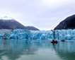 During lunch we arrived in  Arnarfjordur whose sides are composed of stacked layers of basalt. During the last Ice Age a gigantic glacier rasped and gouged the rock to form this  spectacular drowned u-shaped valley, at the head of which is the Dynjandi waterfall. It is aptly named The Thunderer. At 100 metres in height and 60 metres in width at its base, this is an impressive feature. The cascading water has eroded a series of rock basins, comparable to a number of rock steps, one below the other. We slowly made our way to the topmost platform. The thump of the water, the fine spray in the air, the verdant, lush carpet of mosses, the multi-coloured rocks, the grandeur and scale of the place, all combined to mesmerise. From our perch high above the valley floor, the vista was spectacular. Anchored in the fjords’ pond-calm waters our ship was ringed by kayakers.