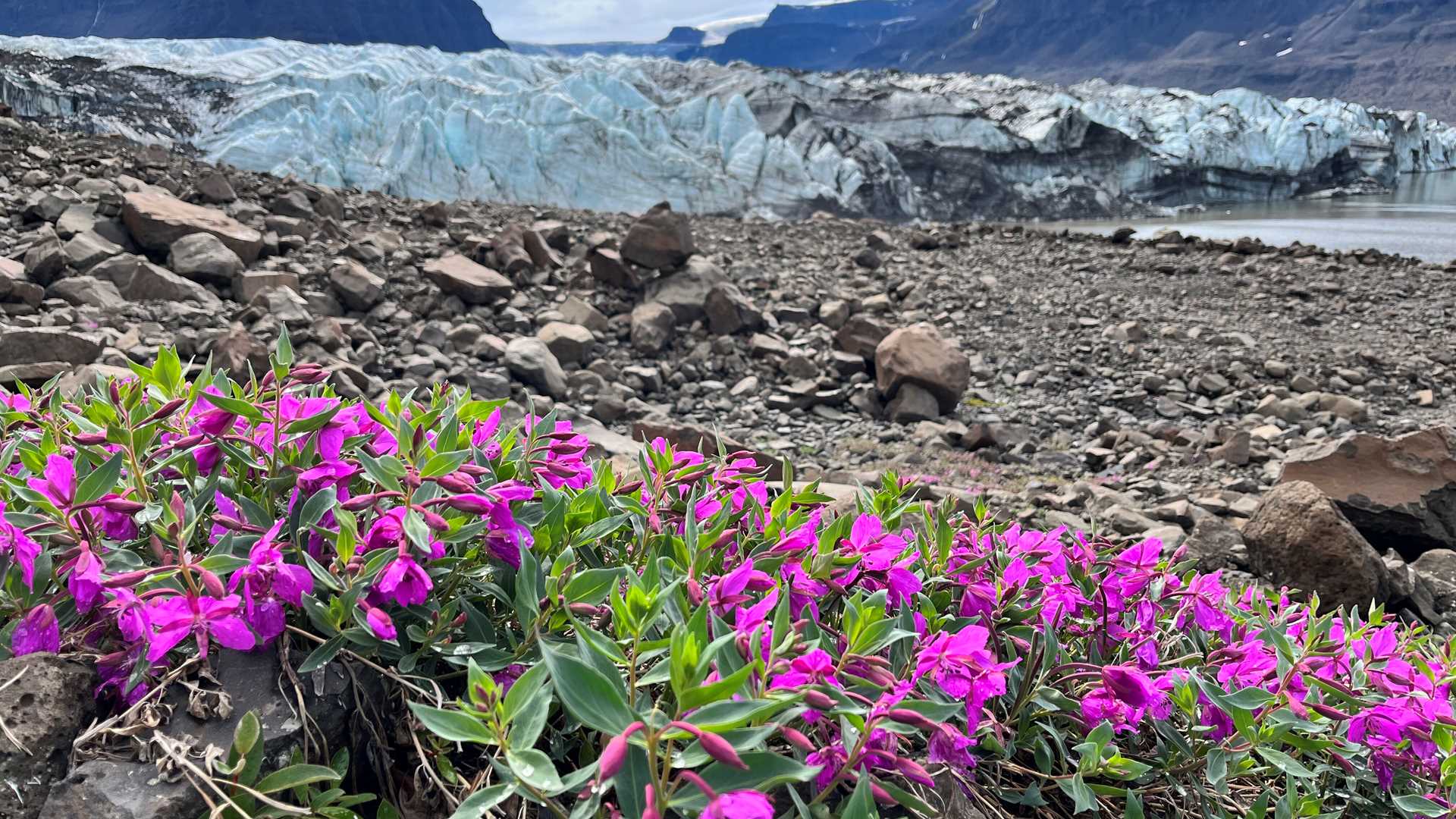 We explored columnar basalt, icebergs, and waterfalls at Vikingebugt, and we hiked on a moraine beside the glacier at Terrassevik.