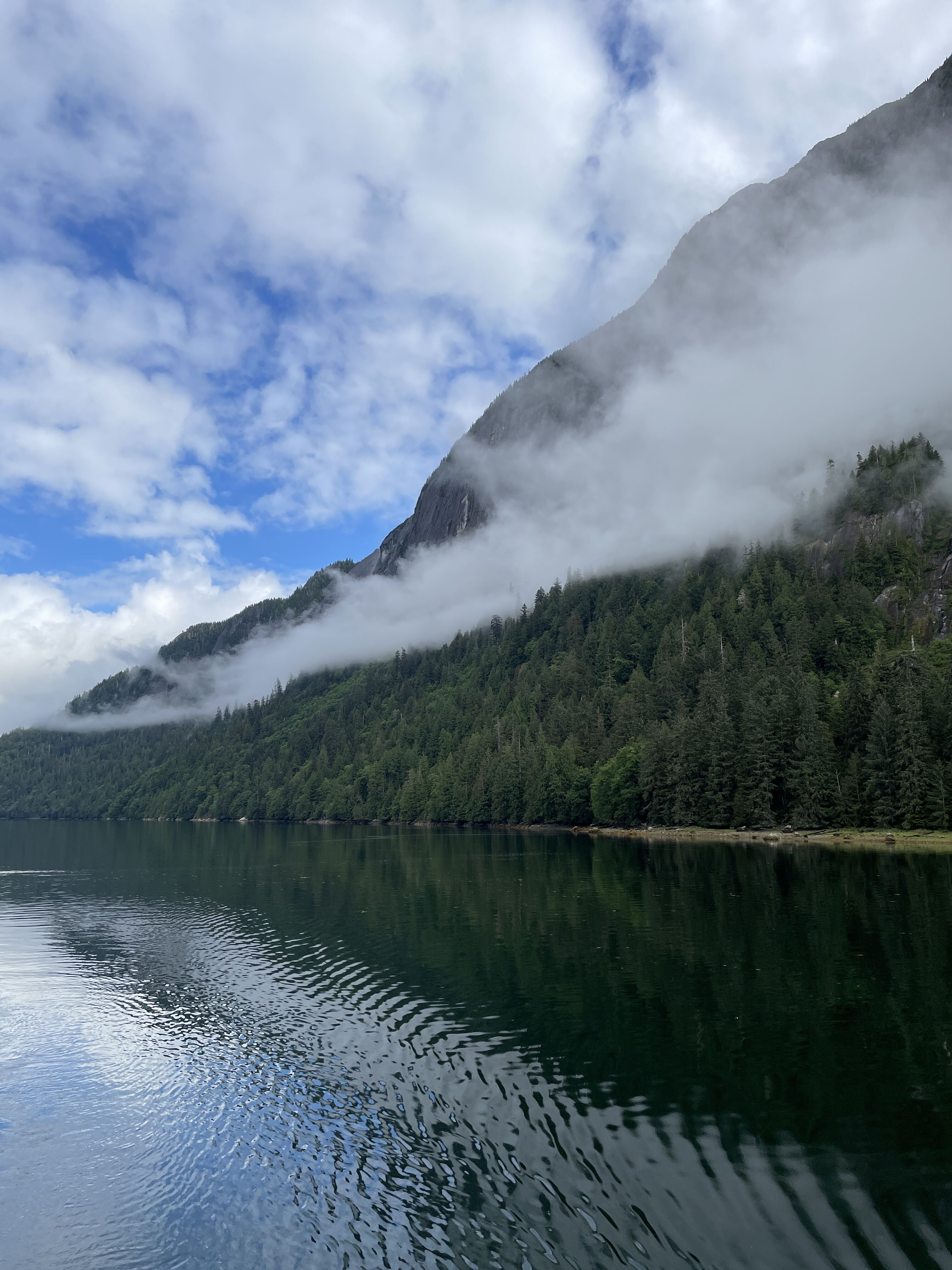 On the first day of this expedition, we were treated to a wakeup call in the forest of Walker Cove. This idyllic place calmed our anticipation for the day at first sight. We were treated to the namesake of the Misty Fjords National Monument all morning long. As the mist hung motionless in the tops of the trees on the towering mountains above us, we kept ourselves at sea level with exploratory Zodiac rides in the still waters of Walker Cove. The day continued with a copious amount of time spent searching shorelines and horizons for charismatic megafauna. Making our way north is the path we will take through the night on our way to explore the town of Wrangell tomorrow.
