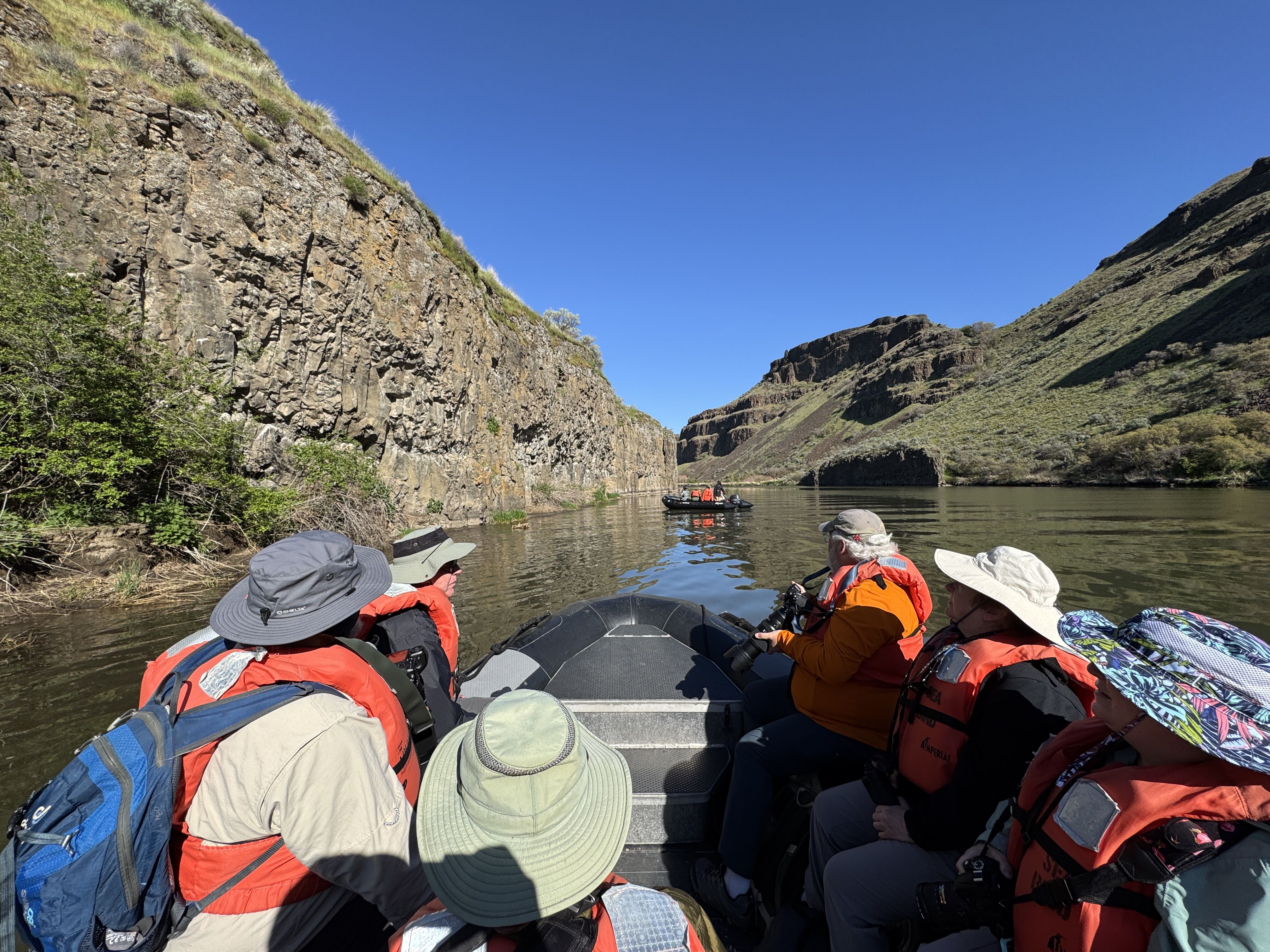 Unseasonably warm and dry weather continued to grace us as we proceeded with our expedition down the Columbia River. The morning was crisp as we disembarked in Hood River, Oregon, but quickly warmed up as we boarded our coaches. Our explorations began at Multnomah Falls, the number one tourist attraction in the state of Oregon. After we experienced this astounding cascade, some of our guests proceeded to Beacon Rock for a scenic climb up this 800-foot tall, aged lava plug. Others went to the Bonneville Fish Hatchery where we visited a local icon, Herman the sturgeon. Then both groups of explorers met at the Columbia Gorge Interpretative Center for Syncline wines and an overflowing helping of intriguing local history. As the superb weather continued, we voyaged back to National Geographic Sea Bird for a lovely afternoon of classic cruising down the Columbia River. Guests enjoyed the sun on deck or an engaging presentation on how climate change is affecting migratory birds. Complimentary water-level views of Multnomah Falls followed, and our last transit through a lock of this trip – a lovely passage through the Bonneville Lock and Dam. Photos by Doug Crispin and Alex Rubenstein