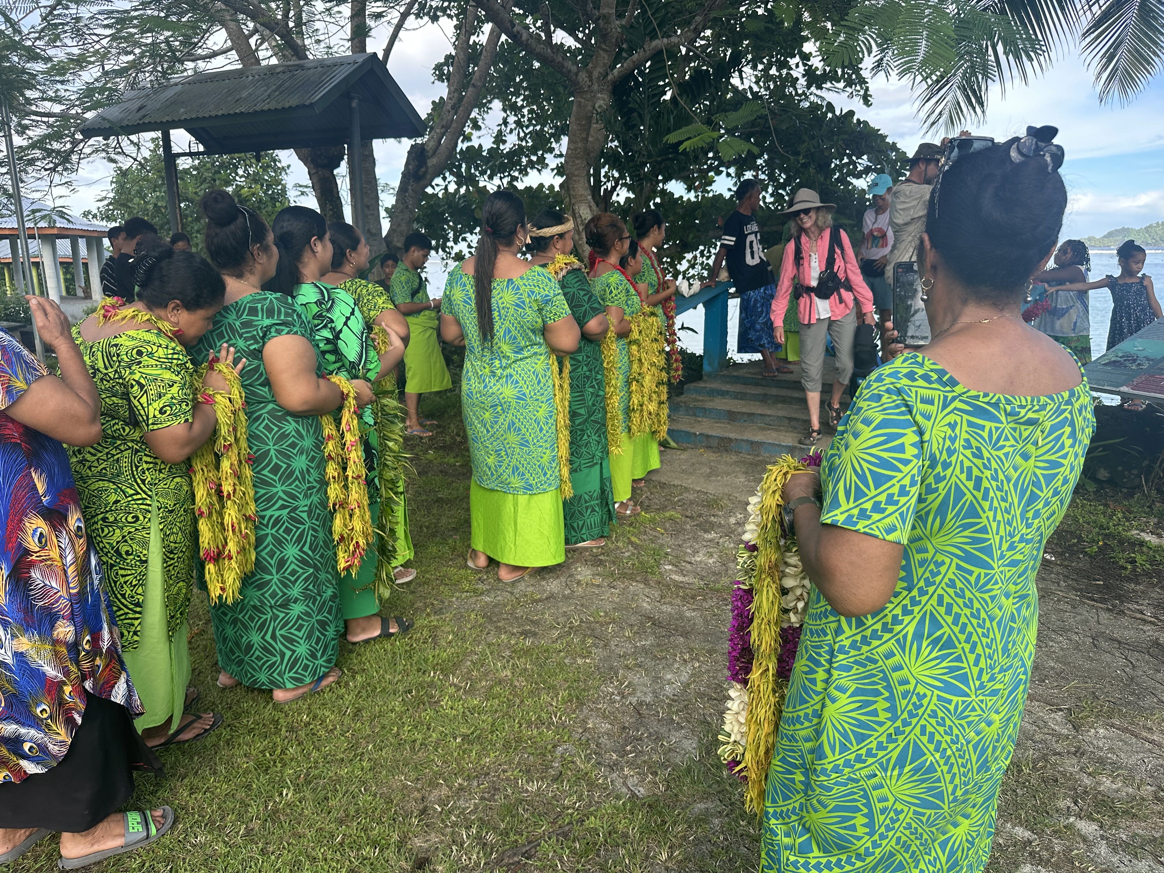 This morning National Geographic Orion entered the calm waters of Wallis Island, an atoll. We landed with our Zodiacs to a greeting from the local people of Wallis. We were welcomed with a traditional dance and musical performance, along with fresh fruits and coconuts.