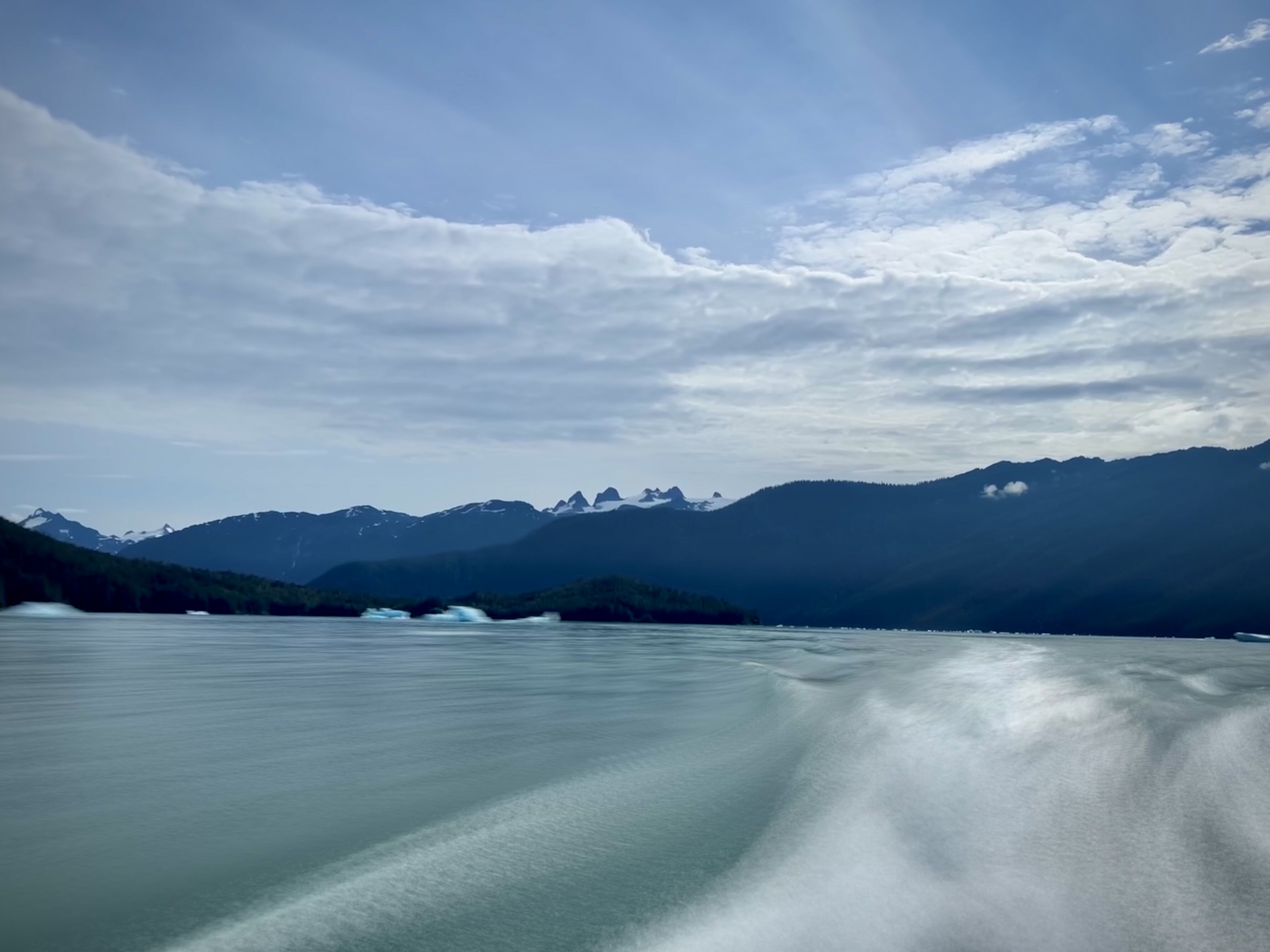 The day got off to an amazing start after we arrived in the quaint fishing town of Wrangell, Alaska. There was a plethora of adventures to choose from in the morning, including jet boat tours up the Stikine River, a Tlingit cultural experience at Chief Shake’s longhouse, and even a bear viewing experience at Anan Wildlife Observatory. Throughout the day, we got to see all kinds of animals, from Sitka black-tailed deer to bald eagles to both black bears and brown bears. In the afternoon, we continued exploring Wrangell by hiking up Mt. Dewey, biking to Rainbow Falls, and exploring the local shops in town. Some of us even got to try wild blueberries, huckleberries, and thimbleberries as we walked around town and up Mt. Dewey. The crescendo of the day was when Chief Mate Eamon spotted some humpback whales traveling north through Snow Passage during a gorgeous Alaskan sunset. We cannot wait for the new adventures that tomorrow will bring!