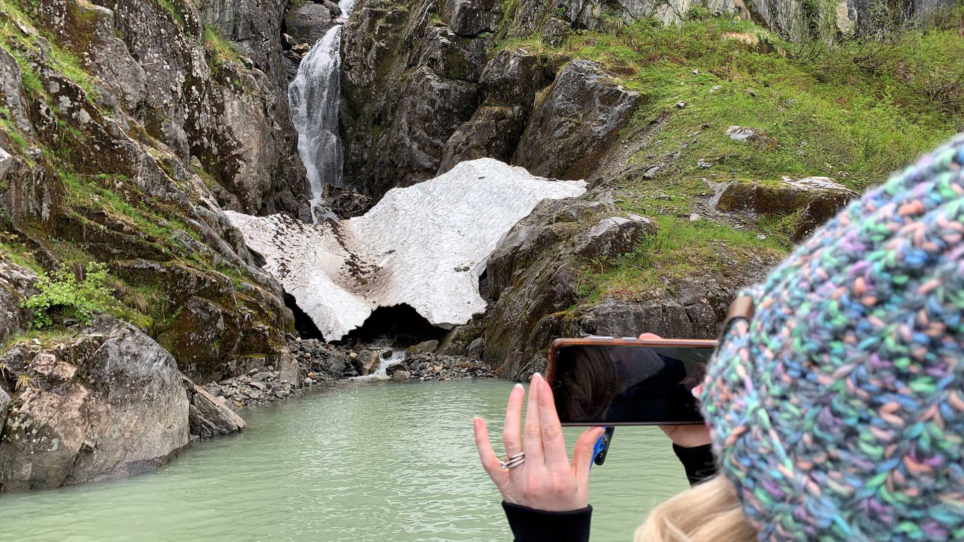 Cruising up the Stikine River in jetboats provided an exciting vantage point to view waterfalls, eagles, and bears near Wrangell, Alaska. These jetboats are propelled by water movement and only draw about a foot and a half of water below them. The nimble boats allowed us to explore shallow reaches upriver and enter Shakes Lake, which was filled with brilliant glacial icebergs. Conditions today were excellent to view Shakes Glacier at the head of the lake.