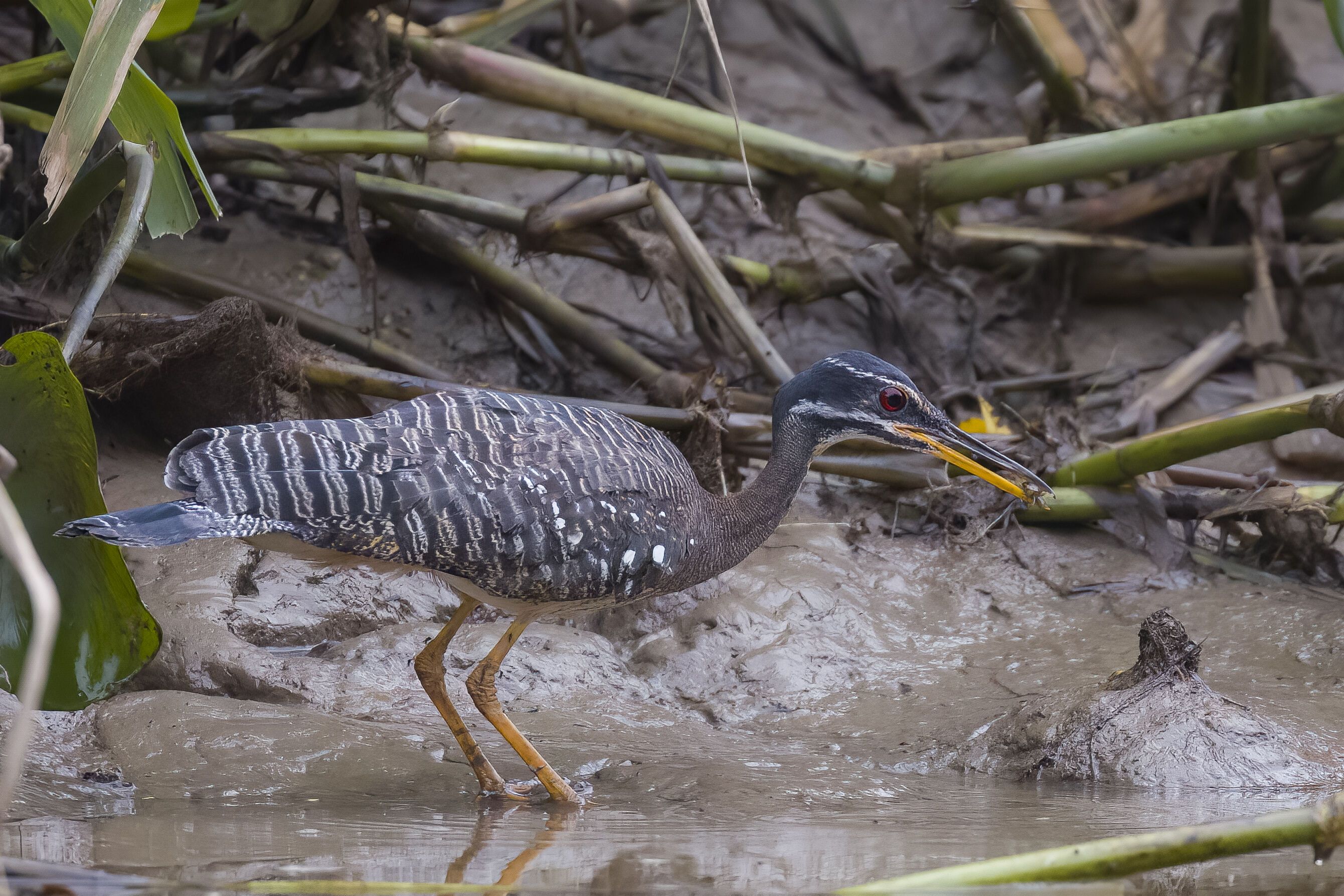 We started our second full day in the Peruvian Amazon a bit earlier than yesterday. We boarded our skiffs at 5:45 a.m. to explore Yanallpa Creek and take full advantage of the time of day when birds and other creatures are most active. Also known as Belluda Creek, Yanallpa is a small and narrow tributary of the Ucayali River and part of the Pacaya-Samiria National Reserve. We started with a very interesting visitor from a faraway place, a peregrine falcon that migrated from the Arctic to spend a warm winter feeding on tropical birds. Small groups of red-bellied macaws, the area’s smallest macaw species, flew nearby while several very pretty oriole blackbirds vocalized and displayed as they perched on some snags close to the water. Yanallpa is a very narrow creek, and the water level was fairly low today. Our highly skilled boat drivers managed to navigate around abundant fallen trees, logs, and other obstacles while we kept finding interesting species. Great black hawks, black-collared hawks, and roadside hawks were abundant, as were lesser kiskadees, yellow-headed caracaras, and the gorgeous cocoi heron. A big surprise was the presence of a truly beautiful sunbittern, a timid species that allowed us to watch it very closely for a long time. It searched the shoreline looking for and capturing small creatures to eat, including some worms and one small crab. A bit farther upriver, we found a large green iguana waiting for the sun to show up and a yellow-crowned brush-tailed rat looking at the outside world from the safety of its hole some twelve-feet up in a tree.