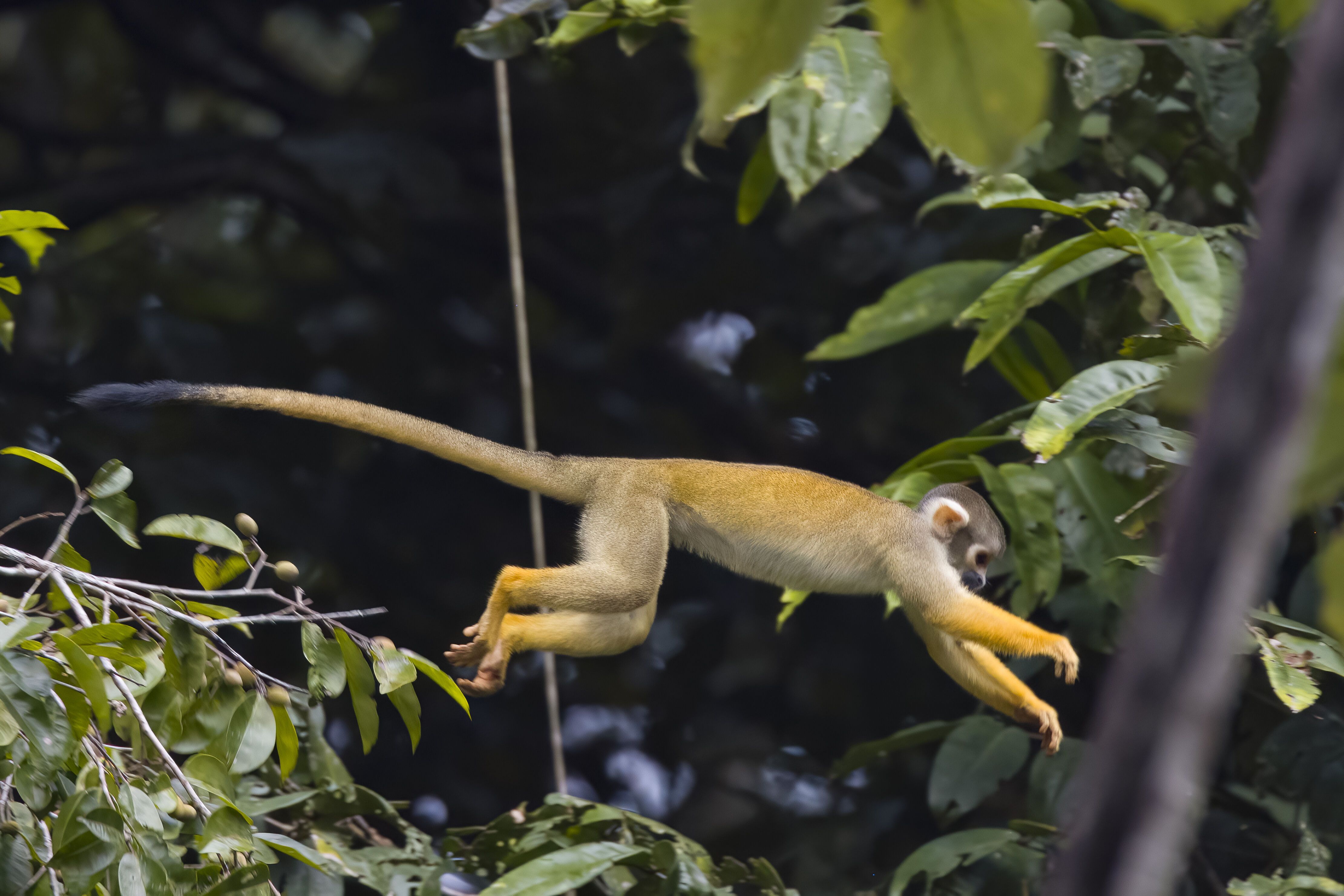 We started our second day by visiting Yanallpa Creek, a beautiful tributary that flows into the Ucayali from deep inside the Pacaya-Samiria National Reserve. Several blue-and-yellow macaws flew overhead — a pretty awesome way to start the day! A yellow-crowned brush-tailed rat looked at us from the safety of its hole in a tree, while saddle-back tamarins, Isabel’s saki, and brown capuchin monkeys moved around the trees looking for breakfast. We even got the chance to see a coendu, a tropical porcupine — a rare sight!