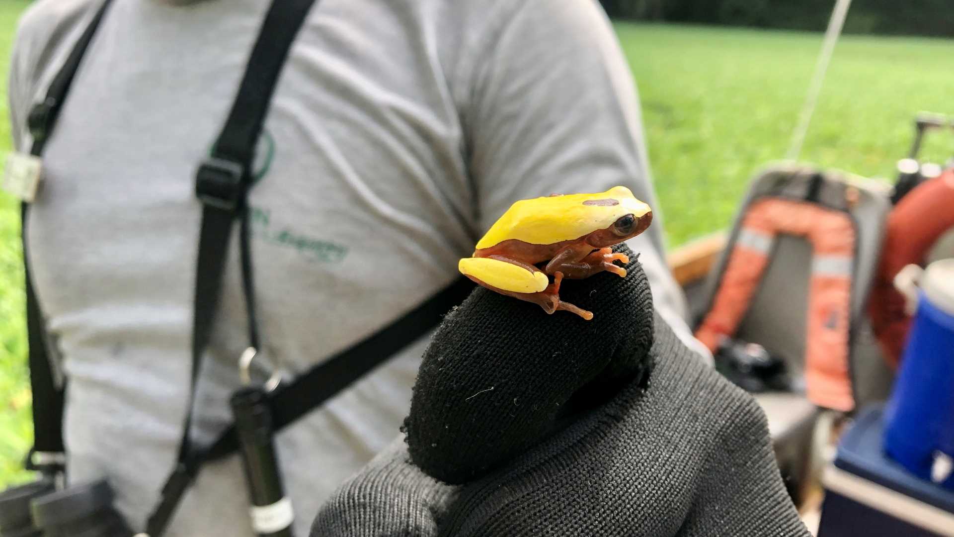 Right after breakfast, we boarded the skiffs to ride along the blackwater Yanayaquillo River. We were greeted by the playful behavior of capuchin monkeys and the vibrant hues of blue-and-yellow macaws. Our journey led us to the tranquil Renacal Lagoon; it is abundant with floating vegetation and serves as a haven for sun-basking reptiles. Here we marveled at white caimans, a caiman lizard, colorful frogs, and even a small anaconda; each creature contributes to the lagoon's rich mosaic of wildlife.