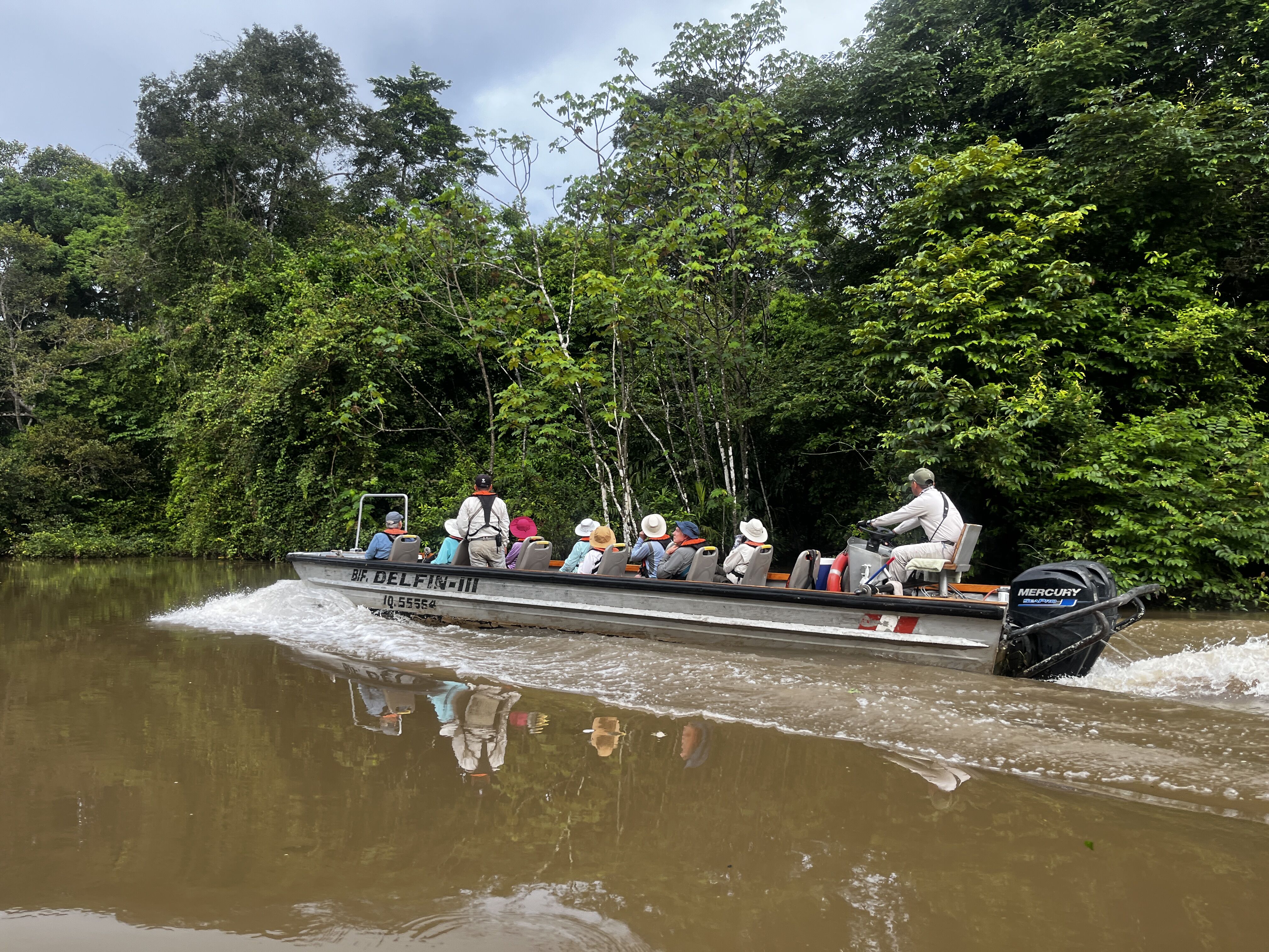 What a beautiful morning! It had rained for most of the night, but amazingly we didn’t experience a drop of water falling from the sky all day! Birds of all shapes and colors greeted us on our skiff ride this morning, with monkeys adding to the cacophony of sounds.