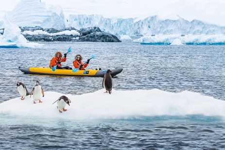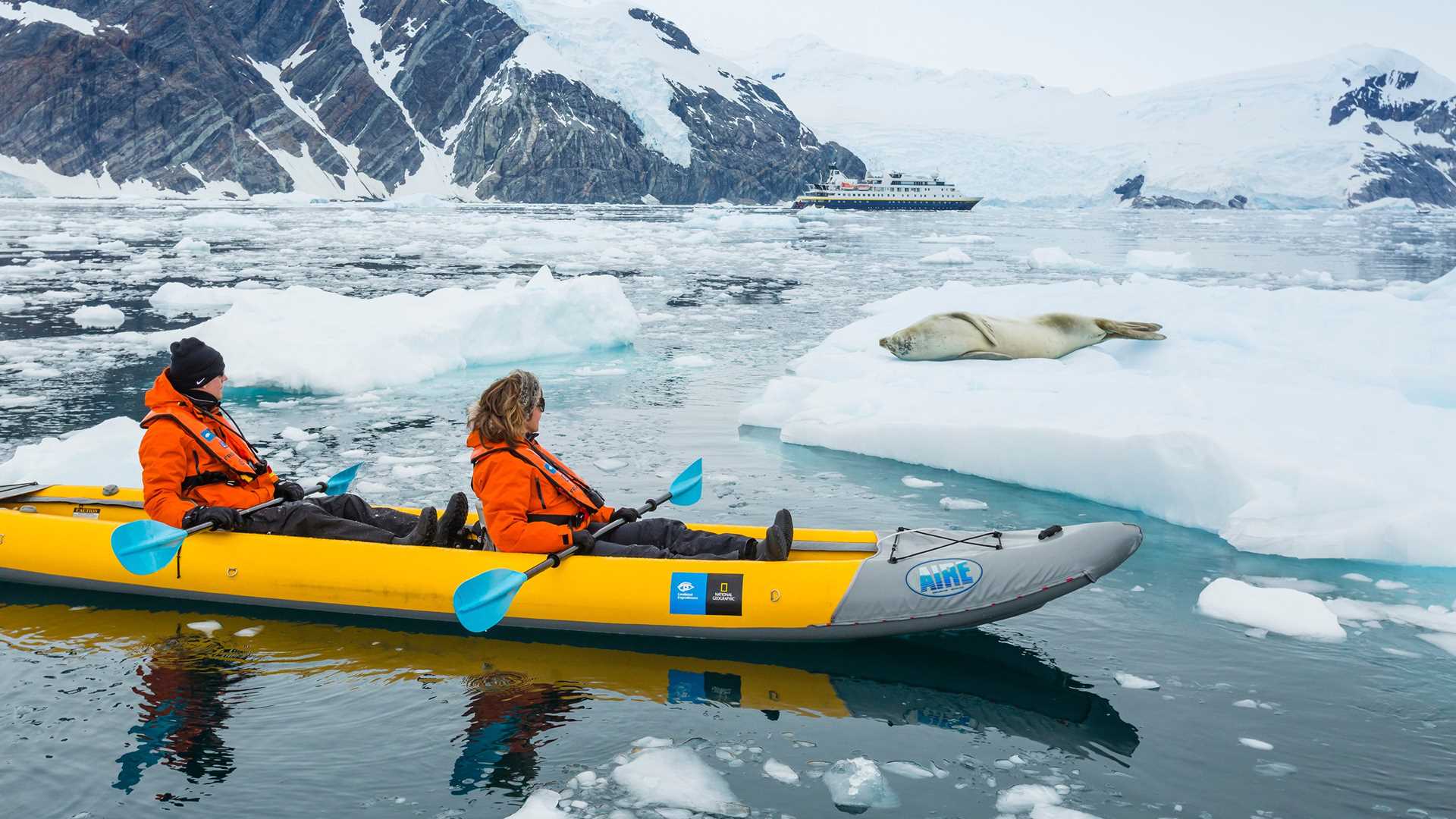 Kayaks are one of the state-of-the-art tools on our expedition ships that help you experience the excitement and wonder of genuine exploration. Choose from single or tandem kayaks that are easy and fast to deploy in a range of landscapes. Avid kayakers will be eager to venture unaided, but if you’ve never kayaked before, our naturalists will provide paddling advice to make sure you are comfortable and confident on the water. While we have opportunities to kayak all around the world in myriad remote and remarkable places, these are some that truly stand out.