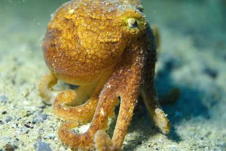 “This tiny, bottom-dwelling predator is a reef octopus, the incirrate octopus Pareledone, which is found in Antarctica at depths of 10 feet to over 300 feet. This glacially fed area is characterized by large kelp and a bottom sediment of extremely fine glacial silt, a baby-powder-like substrate that is easily disturbed and must be treaded upon lightly. At only two inches in diameter including arms, this octopus is incredibly unique, crawling across the sea floor to avoid detection rather than pushing itself through the water column which would create clouds of silt and alert predators to its presence. An outstanding find!”