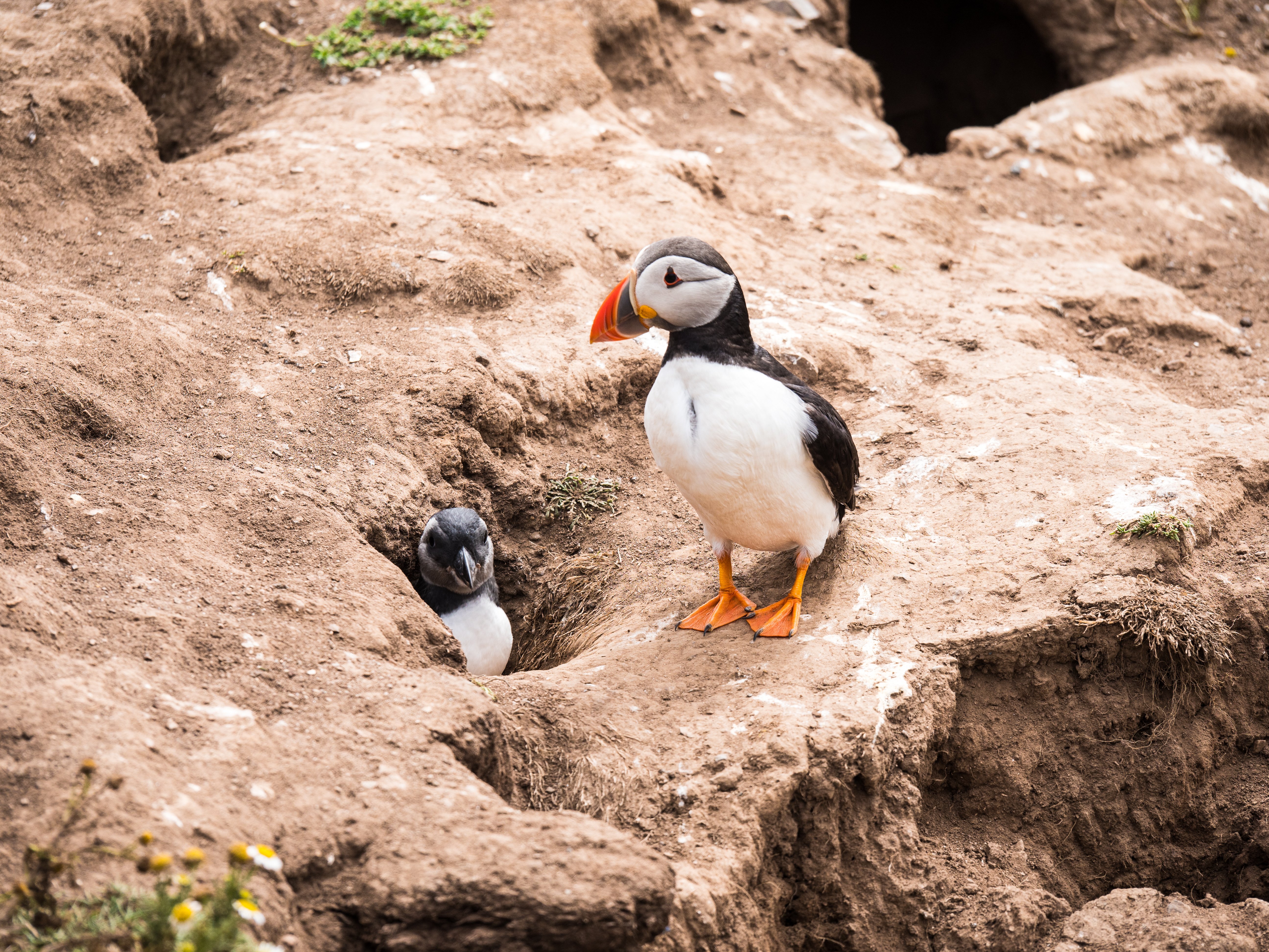 Puffins don’t begin breeding until they are between the ages of three and six. However, once they start and have a found a suitable partner, they usually mate for life. Couples return each year to the same burrow where they raise a single chick (known as a puffling!) and share parenting duties.