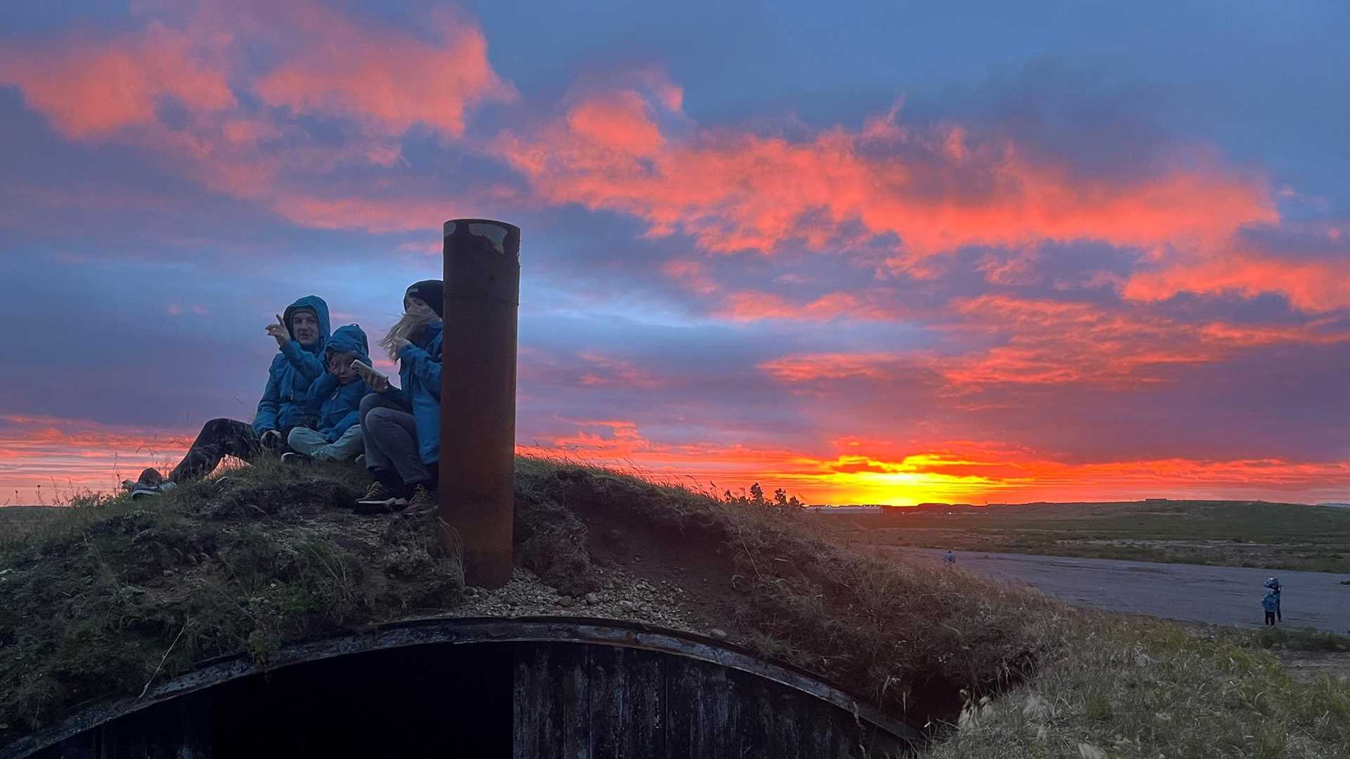After an early dinner, we mounted a trio of buses that carried us out onto the Reykjanes peninsula to an abandoned airstrip. From there we could already see the spectacular eruption very clearly, but to get a better look, we made our way onto some of the old storage bunkers which lined the airstrip. This gave us a view of the eruption in all its glory, with smoke billowing into the sky from the two-kilometer-long fissure, and also a number of smaller fires. —Andreas Guðmundsson Gähwiller, Cultural Specialist