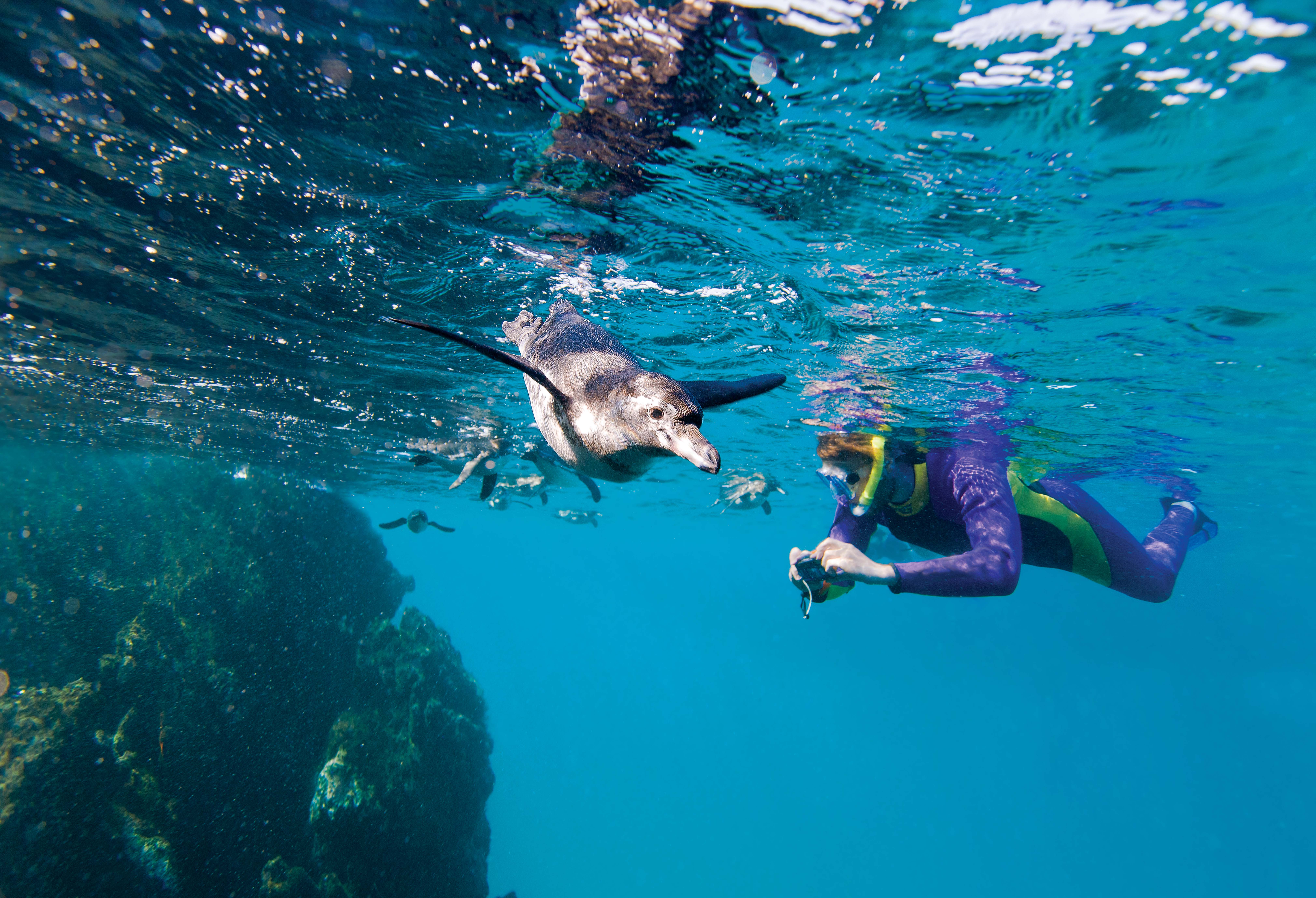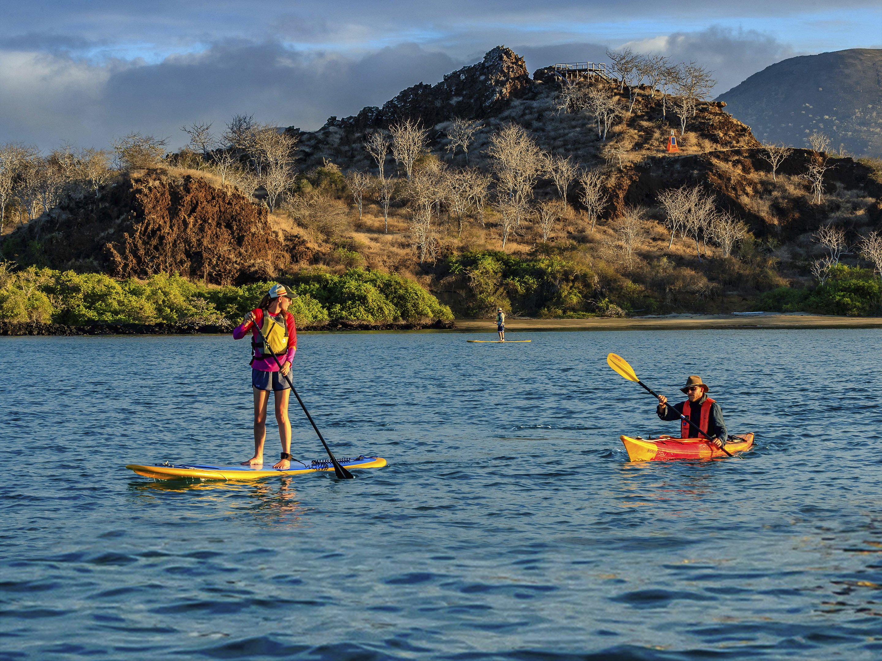 You get to do all the things one does in playful places—walk, hike, explore, snorkel, often twice a day; kayak, or paddleboard—but what a difference! Only in the Galápagos highlands can you walk among giant tortoises freely grazing or enjoying mud baths. Only in Galápagos can you snorkel with penguins. Only in Galápagos will a kayak or paddleboard take you past black lava ledges studded with flightless cormorants, or tiny penguins resting after their undersea hunts. And whether you pack a camera or just your smartphone, only in Galápagos can an ordinary person easily get professional-quality shots.