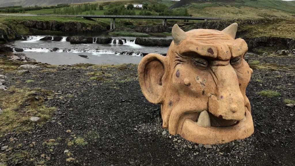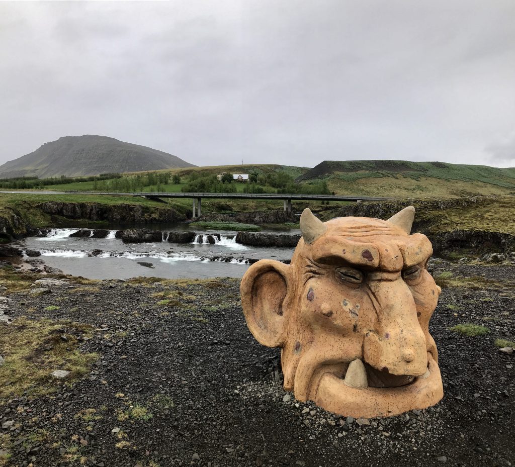 A troll face in rock waterfall. Photo by Dagny Ivarsdottir.