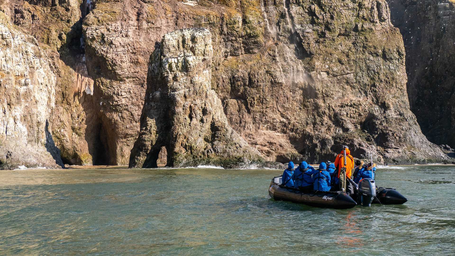 This singular spectacle can be joyously overwhelming, even for a non-birder. Witnessing the profusion of wildlife and the cliffs as the Zodiac weaves through arches that are made for exploration is amazing—not to mention you’re hundreds of miles from any mainland anywhere. It really is one of the best places in the world for a Zodiac tour."